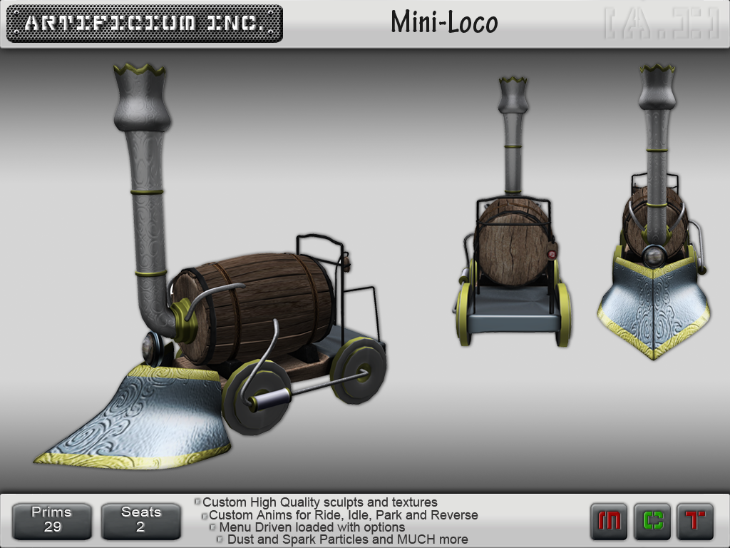 The Penny Farthing indeed gets a new twist with an on board steam boiler. Wearing the bicycle activates its AO and allows you to wander SL in high Victorian Steampunk style with sounds of hissing steam, a bicycle bell and horn to add to the fun! Walk, run, and even fly away