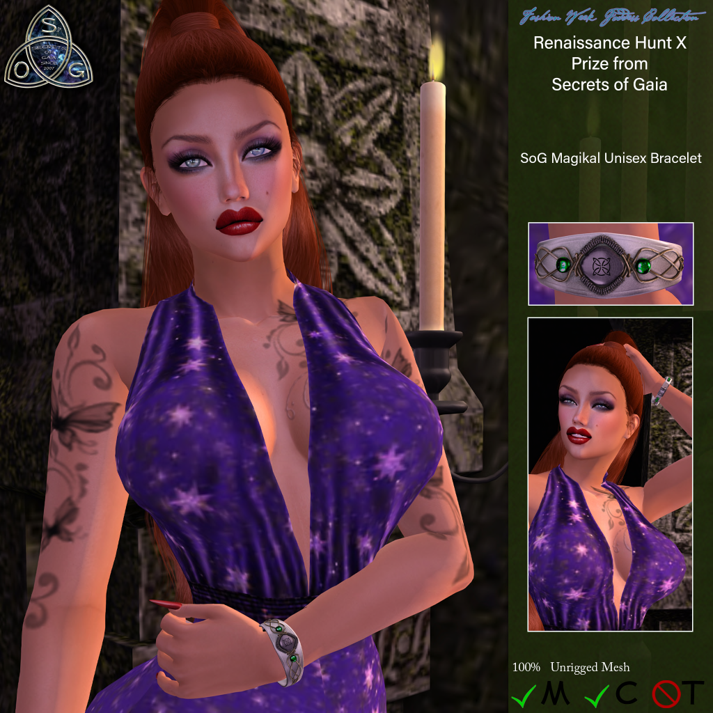 Secrets of Gaia, bringing the styles of the deities to Second Life since 2007. Specializing in unique original designs in jewelry, silks, apparel and more for an eclectic variety of personal styles.